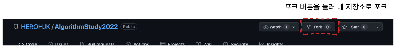 1. 원본 저장소를 내 저장소로 Fork 합니다.