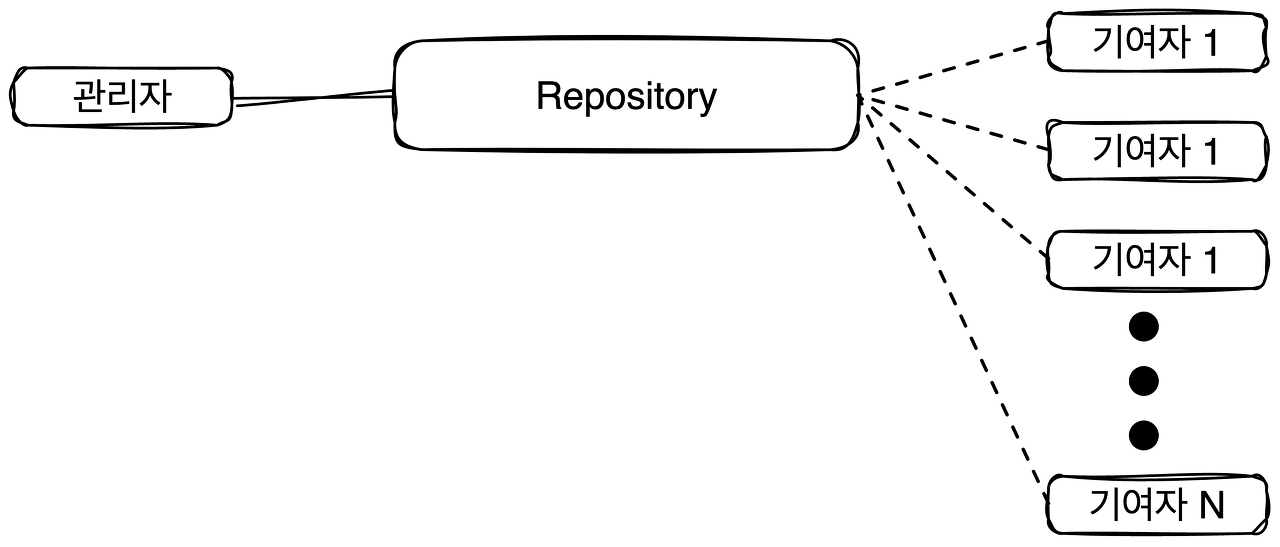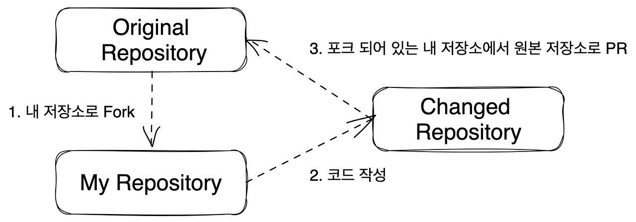 수정할 내용이 생겨서 기여자가 수정을 하게 될 때, 리뷰를 받고, 리뷰에 대해 승인을 받게 되면 그때 코드가 합쳐지는 방식입니다. (요청 - 승인 없이 기여자 독단적으로 Repository의 코드를 수정한다면, 관리가 힘들게 되겠죠?)