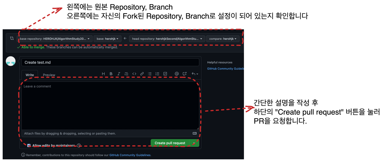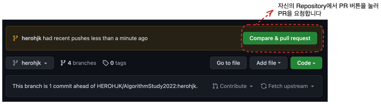 3. 코드가 정리되었다면, PR을 요청합니다.